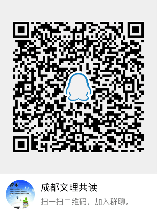 共读活动将于5月8日举行开幕式, 5月9日正式开始,欢迎我校读者踊跃参与!扫描二维码加入群聊“成都文理共读”:
