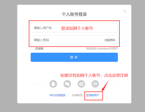 第二步:登录个人的知网账号,就可以在校外免费使用知网研学平台(网址:x.cnki.net)。