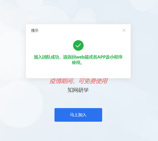 加入团队成功后,就可以在校外免费使用知网研学网页端(网址:x.cnki.net)、手机端(知网研学APP和小程序)和桌面端(知网研学E-study)。