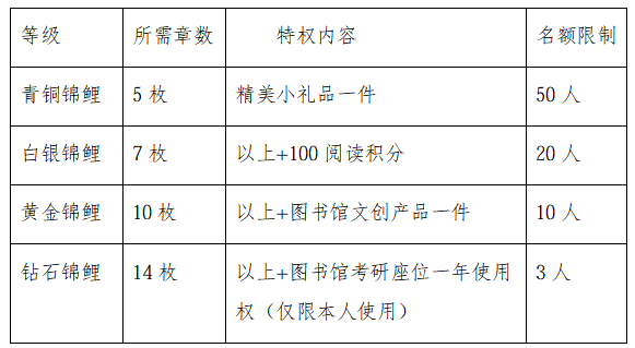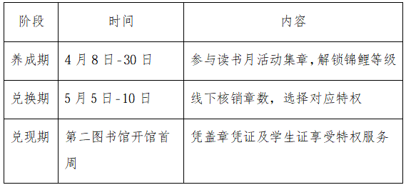 每参加一项读书月活动,获得印章一枚(比赛类活动需参与比赛,作为观众无法领取印章)