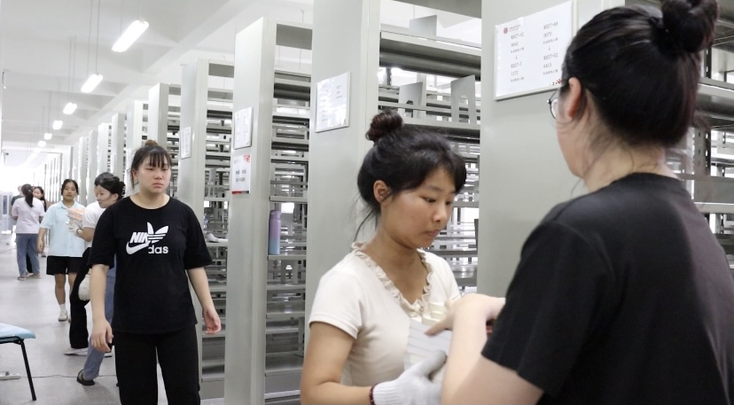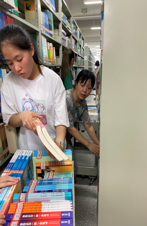 此次暑期图书馆建设工作项目繁琐且辛苦,涉及倒架排架,新书上架约15万册,工作量巨大,除图书馆所有老师外,还有多名勤工学生助理。大家按照实施方案先对旧书进行下架剔旧,并在系统中修改数据,同时按各类书籍进行分类标记,然后将旧书重新运转上架,并预留新书上架位置,最后再完成新书上架。在39度左右的室温下,全馆工作人员以及学生同力协契、充分发挥吃苦耐劳的精神,展现出主动担责、积极奋发的工作态度。整个过程中,大家各司其职,无一人退缩,与时间赛跑,与高温作战。