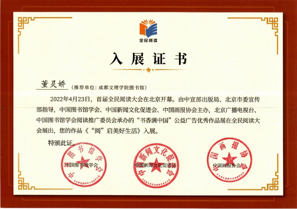 我馆选送的作品由“设计师之家”平台举办的“图书馆杯”主题图像创意设计征集活动推送,成功入选参展。