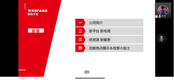 2022年04月14日下午14时至15时,我校线上举办了 “助力学术发现·创新知识服务”的新一代万方数据知识服务平台——带你“玩转”学术文献主题讲座。由万方数据资深讲师崔霞担任主讲,讲解新一代万方数据知识服务平台新功能及文献检索途径和技巧,我校图文信息中心教师代表与各学院学生共八百多人参与讲座,讲座中积极与崔霞老师进行了互动交流。