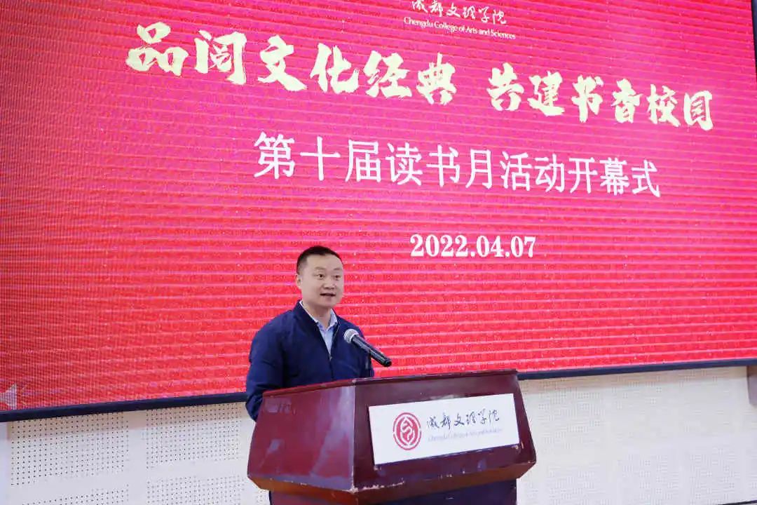 4月7日中午12时20分,成都文理学院第十届读书月活动开幕式于学工部楼105会议室成功举行。常务副校⻓童精明,党委副书记、副校⻓王亚军,学生工作部部长牟金星,图文信息中心主任吴建超,图文信息中心副主任叶世蓉,团委书记、学工部副部长刘洋绪莅临现场。本届读书月以“品阅文化经典,共建书香校园”为主题,旨在加强学风建设,营造良好的读书氛围,培养学生良好的阅读习惯,提升学生的综合素质,开拓学生视野并培养良好的自学能力和阅读能力。本次活动共举行19天,至4月26日结束。