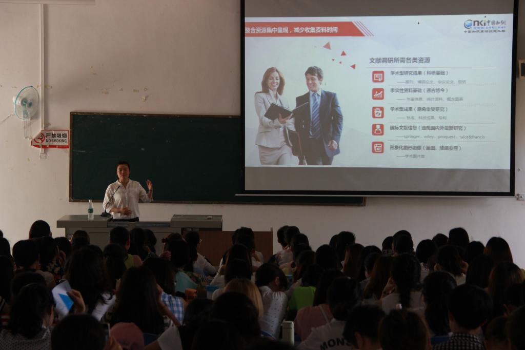 6月2日下午14:00在行政楼D-214教室举行了题为“助力学术创新,提升科研效率”的讲座,本次讲座邀请到中国知网的禹欣老师担任主讲人,图书馆全体老师和各学院的老师代表以及各学院的2013级本科2014级专科共计300余名学生代表参加并聆听讲座。